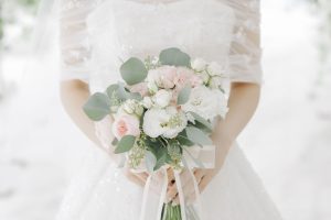 集まったお花をブーケにして、とういさんからあいりさんへお渡しします