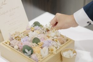 立会人代表としてご友人4名の方にお花を入れていただき完成です!