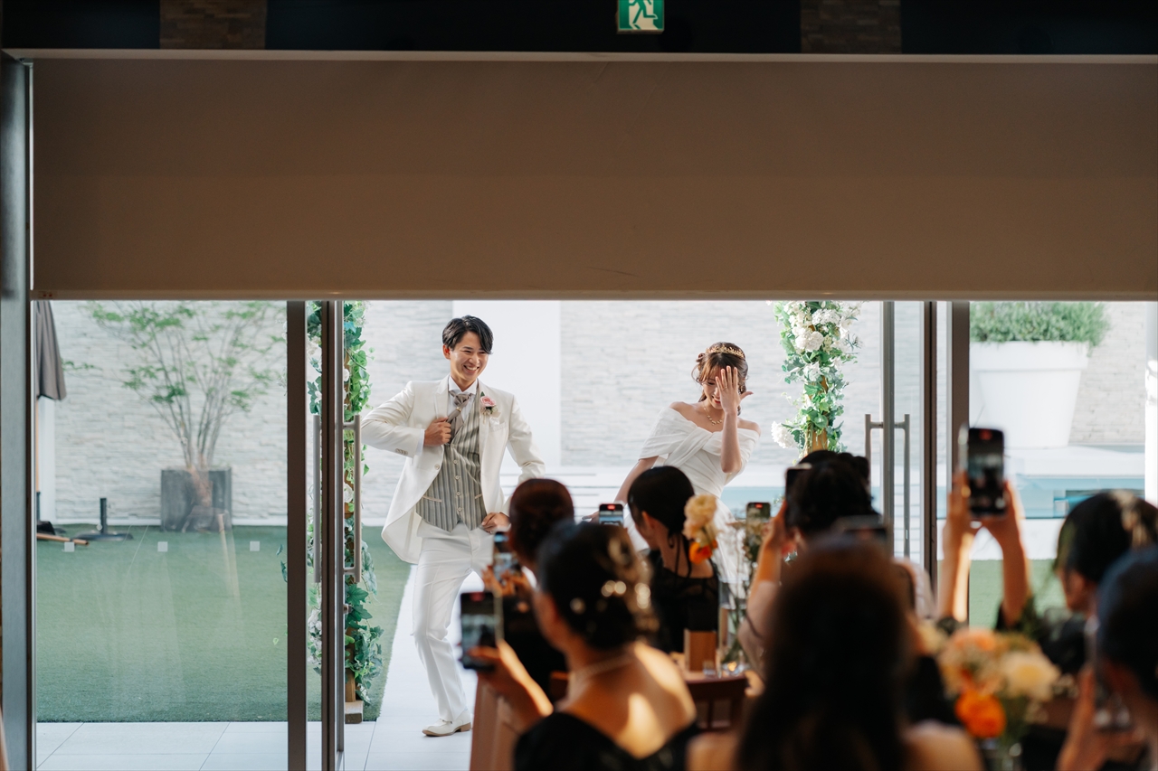 まさかの和装でのお色直し入場にゲストの皆様は驚いておりました!