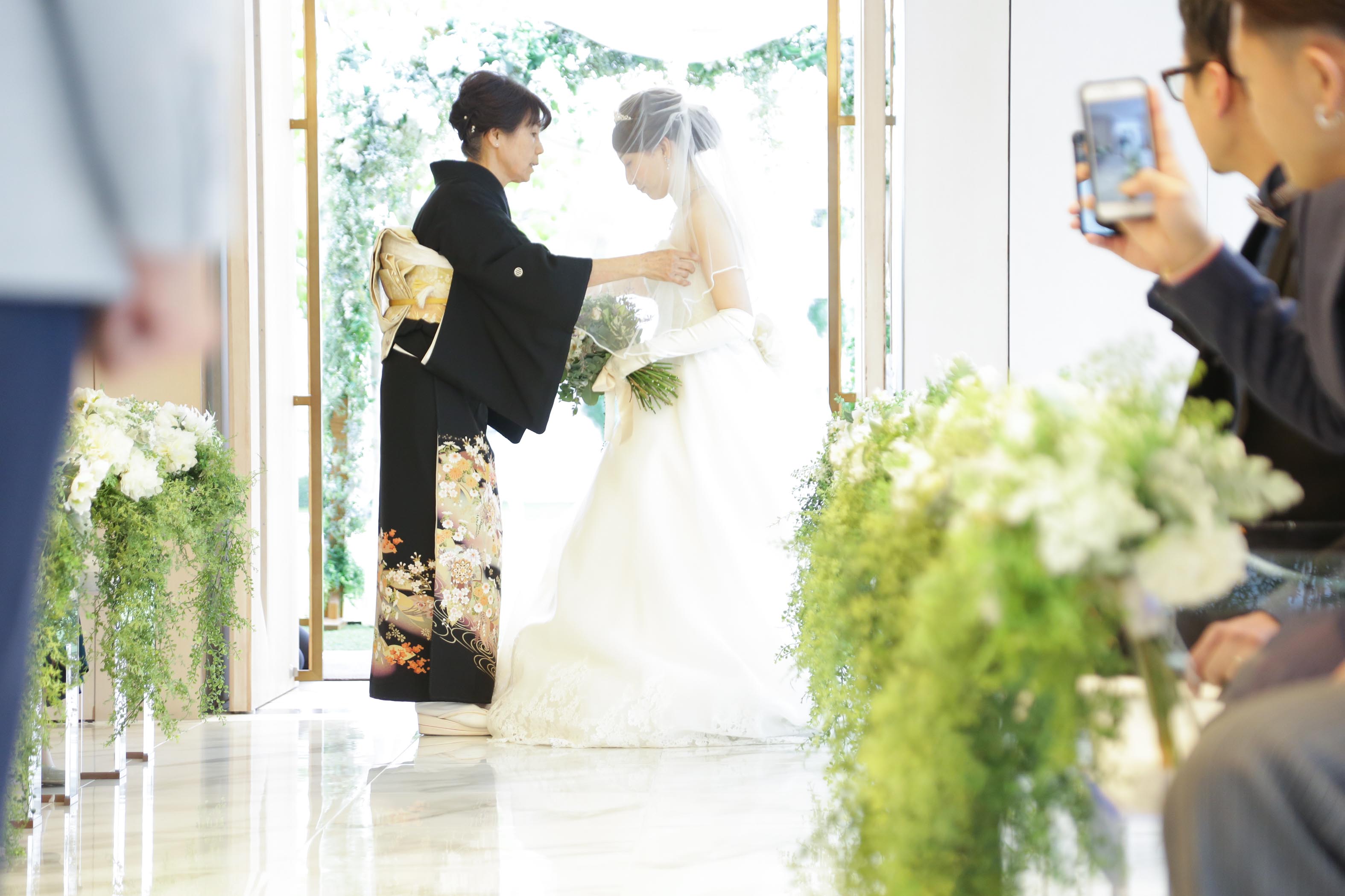 親御様と入場されたまほさんの姿を けいすけさんが見つめます