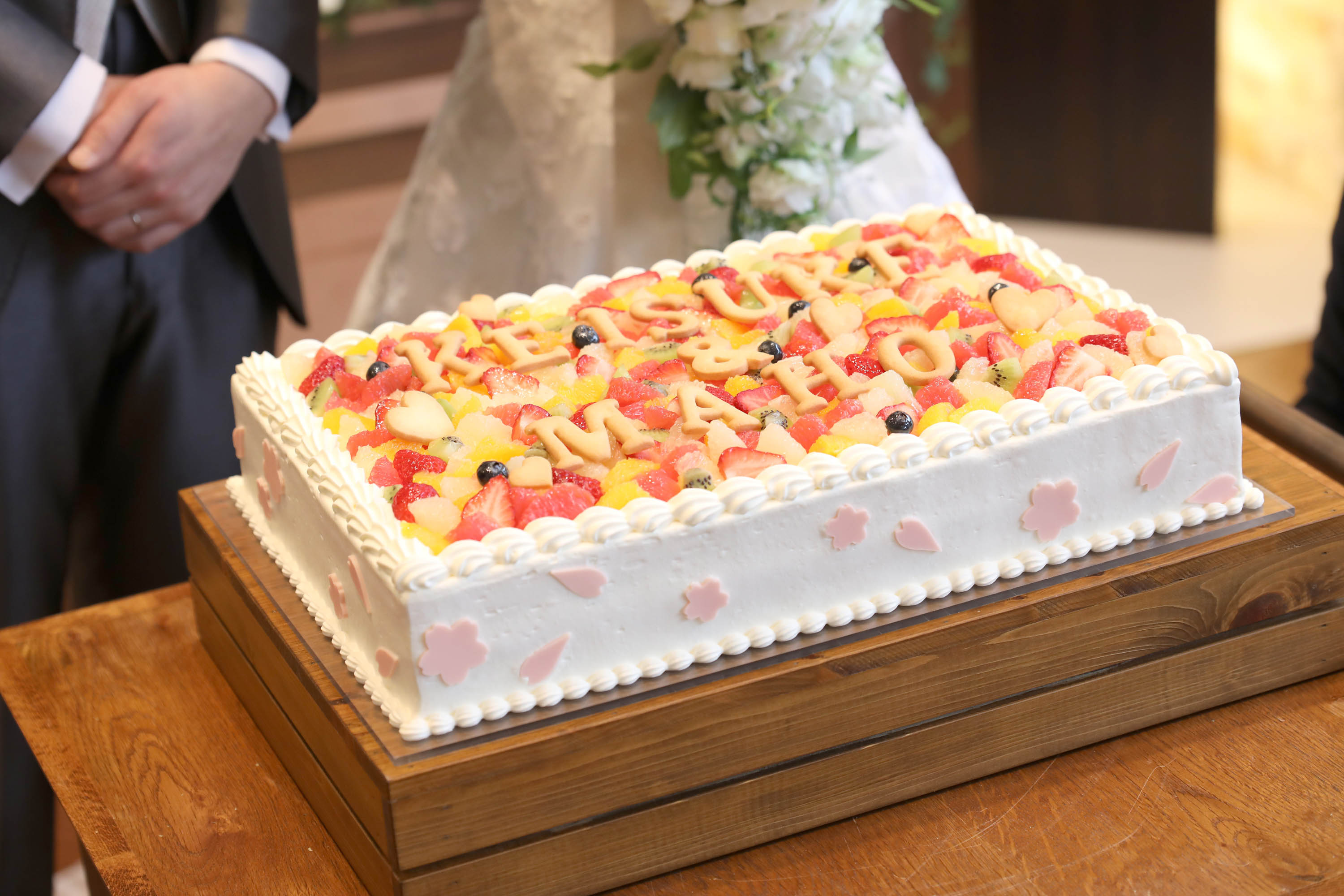 一緒にデザインを考えたパティシエがおふたりの傍までケーキを届けます
