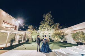 お色直しは夜空の星のように輝く青いカラードレスに衣装チェンジです