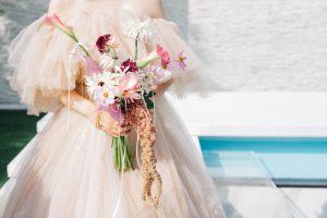 くすみピンクのカラードレスで登場するシーンはとっておきでした!