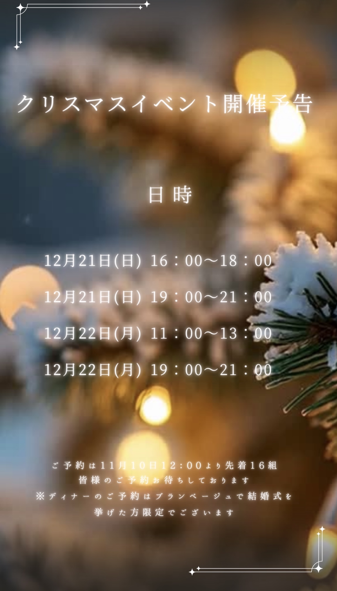 クリスマスランチ・ディナーを12月に開催することが決定しました!