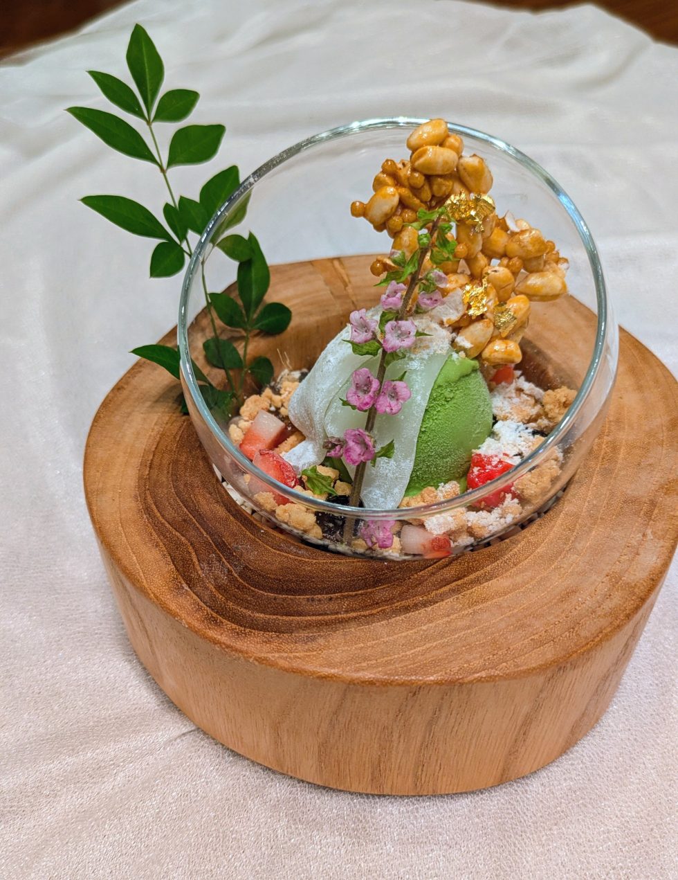 アイスの下には、きな粉のクッキーや黒豆煮、黒豆茶のゼリー