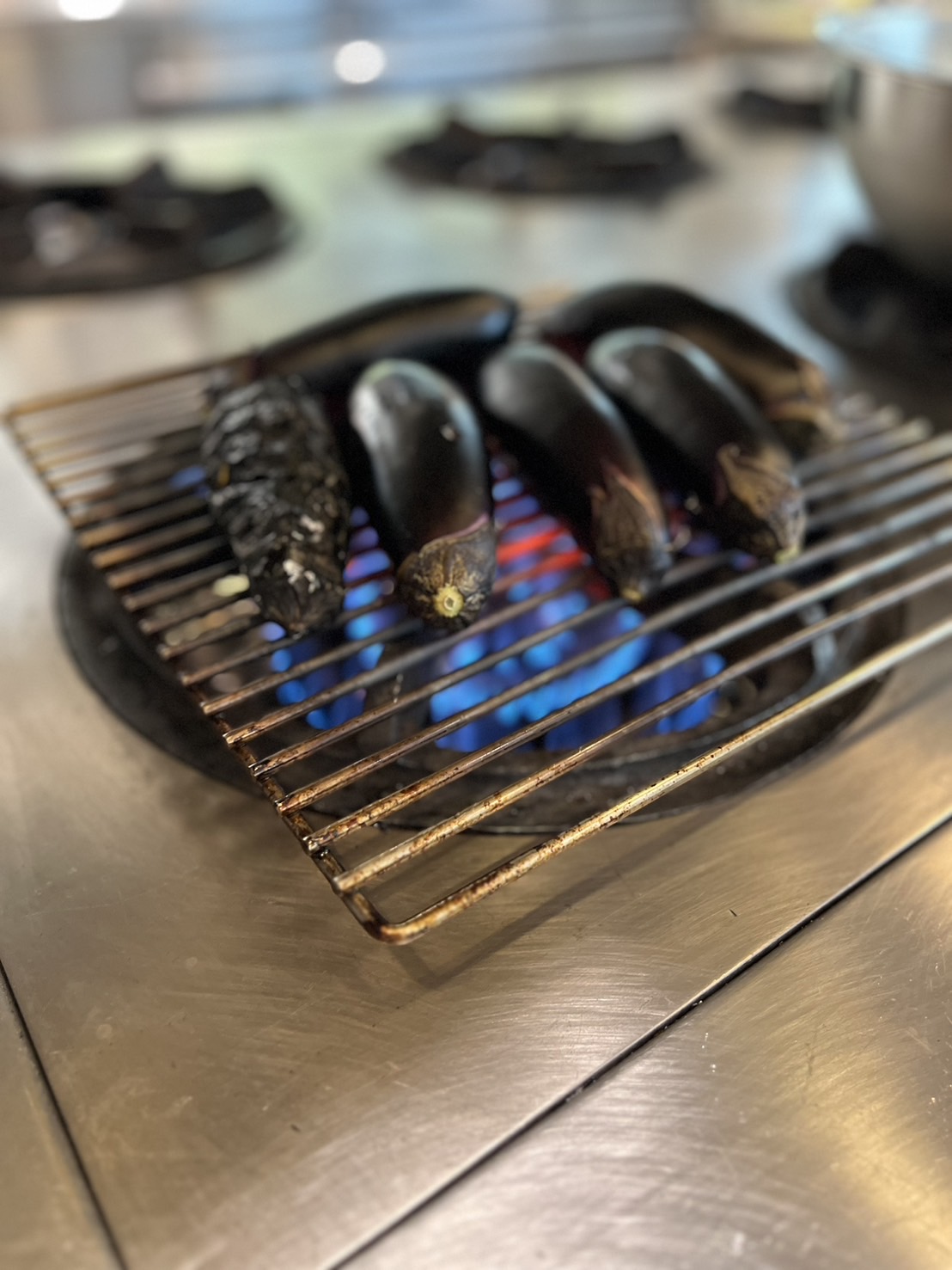 茄子を丸ごと直火にかける焼き茄子です!