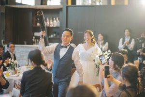 披露宴の始まりはバズーカを放ちド派手に入場!