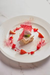 和紅茶を使用したムースと櫻みりんとラズベリーのソースです。